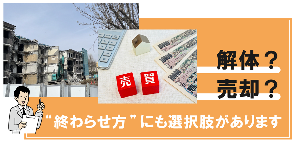 解体・売却・建替え・事業継承など、不動産経営コンサルタントと一緒に“やめ方”を設計できます。